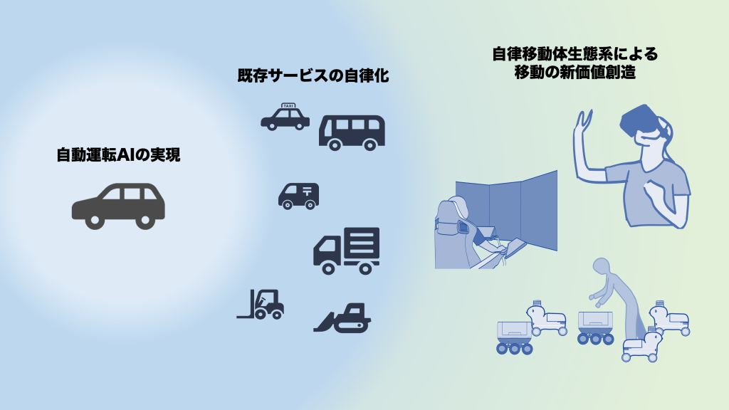 そもそも自動運転技術は,従来の人の運転する自動車の延長線上にあるのでしょうか?ハンドル操作から解放されることで,さまざまなことが可能になるとも言われていますが,これまで人が運転して提供していたサービスを無人化する以外に何ができるでしょうか?