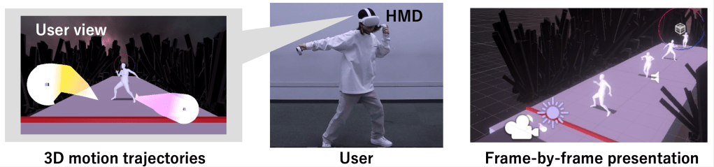 Based on that, we developed DRF, a VR application that combines frame-by-frame presentation with motion trajectory visualization.